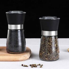Kit 20 Moedores de Sal e Pimenta Vidro 170ml Moinho de Cerâmica e Tampa Plástica Preta Temperos Lyor