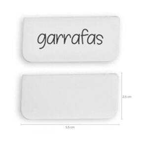 Garantia: 90 dias / Peso total: 150g / Cor predominante: branco / Ref: 7794463744337 Dimensões de cada: 5,5cm (C) x 0,5cm (L) x 2,5cm (A); Conteúdo: 20 placas identificadoras; Material: polipropileno (PP); Cuidados: não lavar com materiais abrasivos;