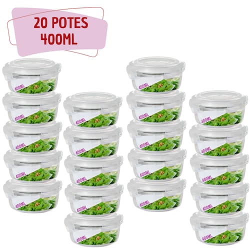 Pote de Vidro Hermético Mantimentos Marmita 400ml 20 Unidades