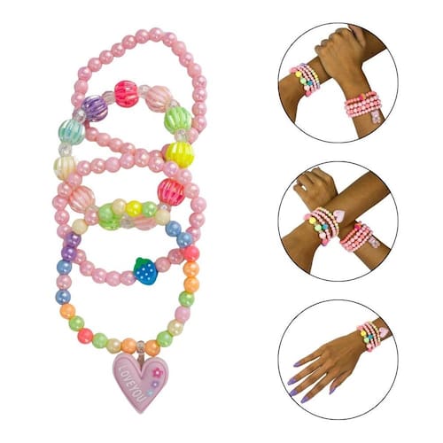 O presente ideal para sua criança Composto por um mix de 20 pulseiras infantis, com cores vivas, pingentes fofos e uma variedade de modelos. O Kit de Pulseiras de Miçanga Infantil é uma combinação perfeita de diversão e criatividade para criar diversas combinações com o mix. Seu elástico não machuca a criança, sendo seguro e firme para que não se parta com facilidade, miçangas feitas de plástico que não desbotam.