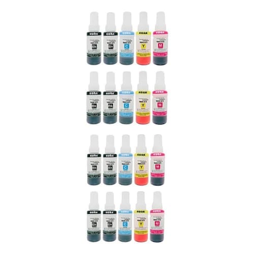 Kit 20 Refil De Tinta T664 Para Epson L120 L310 L355 L380 Kit Com 20 Refil de Tinta Compatível Epson T664O Kit apresentado contém:8 Refil Preto / 4 Refil Ciano / 4 Refil Magenta / 4 Refil AmareloPara Uso Nas Impressoras epson: L110 L120 L200 L220 L300 L310 L355 L365 L375 L380 L395 L396 L475 L495 L555 L1300Modelo do produto: T664Cor: PretoTipo de tinta: CoranteTecnologia de impressão: Jato de tintaConteúdo: 65 mlMarca: KoraModelo do produto: T664Cor: Amarelo, Ciano e MagentaTipo de tinta: CoranteTecnologia de impressão: Jato de tintaConteúdo: 65 mlMarca: Kora- Alta qualidade em impressões de documentos e fotos;- Secagem instantânea;- Cores vivas com ampla gama de tonalidades;- Fotos com cores fiéis e duradouras;- Longa durabilidade;- Compatibilidade com diversos tipos de papel;Garantia do vendedor: 30 dias____CLIENTE SATISFEITO TINTAS DE OTIMA QUALIDADE