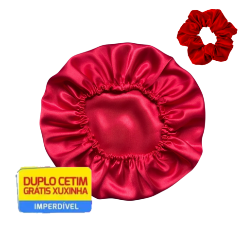 * Uso recomendado: Durante a noite * Tipo de cabelo recomendado: Todos * Modelo: Ajustável * Camadas: Dupla face (2 cores) * Itens Inclusos: 20 Toucas de cetim Ajustável dupla face e 20 Xuxinhas