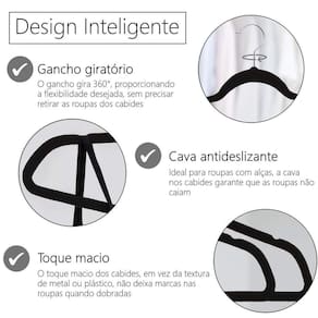 este cabide possui design ultra fino, proporcionando uma organização melhor e aumentando espaço em seu guarda-roupa. Dicas importantes sobre cuidados e uso do produto: