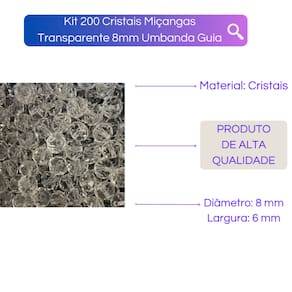 O Kit de 200 Miçangas Tranparente de Cristais da Bialluz, é ideal para criar guias de umbanda e candomblé que emanam paixão e energia,cada uma com 8 milímetros de beleza única.Essas miçangas de alta qualidade são a escolha perfeita para elevar suas práticas espirituais.