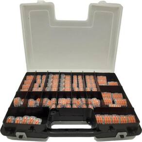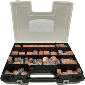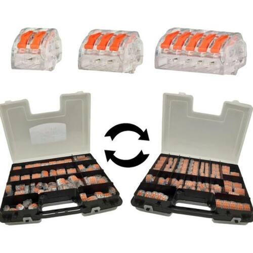 Kit 200pçs conector emenda alavanca rápida borne 2,3,5 fios Maravilhoso kit em estojo dupla face com 200 conectores de alavanca O estojo é double case, possui abertura dos dois lados Caixa com 200 conectores distribuidos da seguinte maneira: -100 de 2 vias - 60 de 3 vias - 40 de 5 vias Todos os nossos conectores possuem certificação ul e csa, garantindo assim que cumprem rigorosos padrões internacionais transmitindo segurança, tranquilidade e qualidade para os consumidores. Projetado para emendas de fios rígidos ou flexíveis, este é o conector mais indicado quando se quer emendar uma quantidade grande de fios. Para fazer a emenda, basta levantar a alavanca, inserir os fios desencapados nos furos do conector e fechar a alavanca. Existem conectores de 2, 3 e 5 vias Vantagens - conecta e isola ao mesmo tempo - economia de tempo - não enferrujam - segurança - versatilidade - reutilizáveis - revestido com material retardante de chamas Aplicações - iluminação de fabricação - residencial - caixas de junção - paineis de controle - sistemas de segurança/alarme - sistemas de pré-fiação - retrofit de iluminação Dados técnicos Tipos de fios: flexíveis, semi-rígidos ou rígidos - tensão máxima : 600vac - corrente máxima: 32a - condutores: flexível 0,08 - 4mm, rígido e semirígido 0,08 - 4mm - temperatura : 105º c - material interno: mola em aço inoxidável combinado com placa de cobre estanhado - material externo: policarbonato com aditivação anti chama Conteúdo da embalagem: 1 x estojo double case com 200 conectores 100 de 2 vias, 60 de 3 vias e 40 de 5 vias