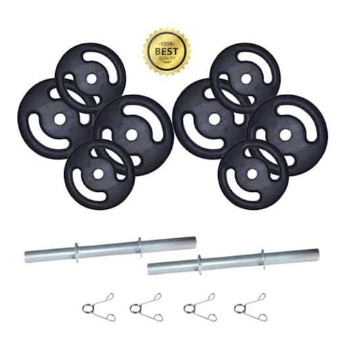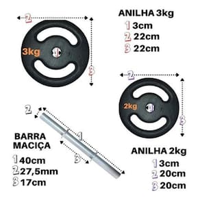 Academia em casa: Kit para quem está iniciando ou retomando suas atividades. O kit SUPER PREMIUM é composto por: 2 barras maciças cromadas 40cm 4 anilhas de 3kg vazadas em ferro fundido 4 anilhas de 2kg vazadas em ferro fundido - 2 pares de presilhas