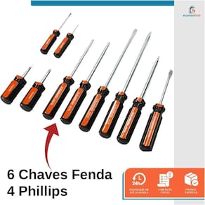 Características técnicas fenda e phillips: Material: aço carbono Material do cabo: pvc Tipo de chave: fenda e phillips Quantidade do jogo: 10 peças Marca: starfer Ref.: 3480216