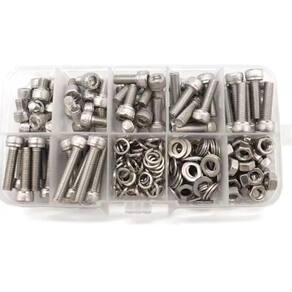 Características do produto: Material de alta qualidade: fabricado em aço inoxidável, garantindo longa durabilidade e resistência à ferrugem Kit completo: inclui parafusos, porcas e arruelas em diferentes tamanhos para diversas aplicações Design hexagonal: facilita o aperto e proporciona maior torque durante o uso Caixa organizadora: mantém todas as peças organizadas e prontas para uso