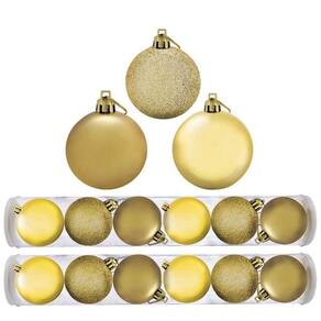 -12 Bolas mistas Dourada 8cm de diâmetro incluso cordão para pendurar - Riomaster