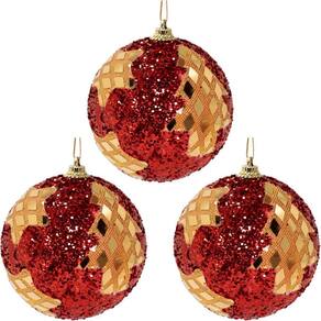 8 Kit Com 3 Bolas Para Árvore De Natal Vermelha Com Glitter Dourado 80mm;