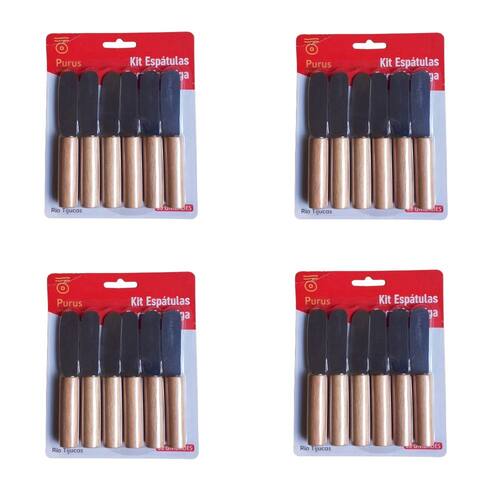 Unidades no Kit: 24 Espátulas Tamanho Total da Espátula: 11 cm Tamanho do Cabo de Madeira: 5,5 cm Material de Fabricação: Aço Inox e Madeira