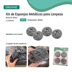 Kit 24 Esponja de Aço Metálica para Limpeza Pesada Multiuso Kit 24 Esponja de Aço Metálica para Limpeza Pesada Multiuso Ideal para limpar e dar brilho em suas panelas, grelhas, assadeiras e outros metais