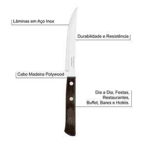Você que precisa de talheres de qualidade na hora seus convidados e principalmente para o dia a dia! Agora você tem a Faca de Churrasco Tramontina Polywood Inox Cabo Castanho de 5 polegadas, seu churrasco no jantar ou almoço terá o charme e a qualidade que você merece.Com lâmina produzida em aço inox com tratamento térmico, a faca possui fio de alta durabilidade e resistência.Possui cabo em madeira tratada Polywood que proporciona a combinação perfeita de material e cor, ideal para ambientes residenciais e comerciais.Além de tudo isso, pode ir à máquina de lavar louças facilitando seu dia a dia ainda mais.Este modelo é ideal para festas, restaurantes, buffet, bar e hotéis. Legal né? Compartilhe com seus Amigos!Conteúdo do Kit:24 - Facas de Churrasco Tramontina Polywood Inox Cabo Castanho.Características do produto:Lâmina: Em Aço Inox;Cabo: Madeira Polywood Castanho.Dimensões Produto (Compr. X Larg. X Alt.):Comprimento: 21,2 cmLargura: 1,0 cmAltura: 1,9 cmTAGS e palavras chave do produto:Restaurantes, Talheres, Faqueiro, Atacado, Buffet, Bar, Hotel, Faca de Serra, Faca de Serrinha, Faca de Churrasco, Faca Para Churrasco, Faca de Mesa, Faca Para Carne 5 Polegadas, Talher, Talheres Uso Diário, Jogo de Talheres, Faqueiro, Jogo de Faqueiros, Jogo de Facas, Conjunto de Facas, Cabo Castanho, Tramontina, Polywood, Castanho, Cabo de Madeira.*imagens ilustrativas.Os objetos que ambientam as imagens, não acompanham o produto. Fique atento: As cores das imagens podem sofrer alterações devido a luminosidade, configurações do monitor e até mesmo a percepção do usuário.