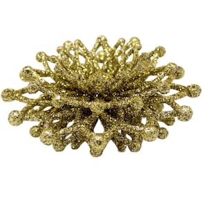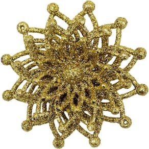 12 Conjunto com 2 Peças Flores Douradas ;Enfeite Para Árvore De Natal;