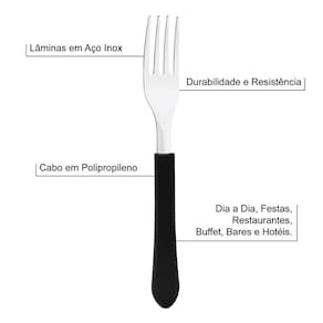 Você que precisa de talheres de qualidade na hora de receber seus convidados! Agora você tem o Garfo de Mesa Tramontina Leme Inox Cabo Preto é perfeita para essa ocasião.O Garfo é produzida com lâmina em aço inox tem maior durabilidade devido ao tratamento térmico e possui cabo em polipropileno proporcionando maior durabilidade e resistência para o uso no seu dia a dia.Além de tudo isso, pode ir à máquina de lavar louças facilitando seu dia a dia ainda mais.Este modelo é ideal para festas, restaurantes, buffet, bar e hotéis. Legal né?Compartilhe com seus Amigos!Conteúdo do Kit:24 - Garfos de Mesa Tramontina Leme Inox Cabo Preto.Características do produto:Lâmina: Em Aço Inox;Cabo: Polipropileno Preto.Dimensões Produto (Compr. X Larg. X Alt.):Comprimento: 18,5 cmLargura: 2,3 cmAltura: 1,3 cmTAGS e palavras chave do produto:Restaurantes, Talheres, Faqueiro, Atacado, Buffet, Bar, Hotel, O Melhor Conjunto, Garfo, Garfo de Churrasco, Garfo Para Churrasco, Garfo de Mesa, Talher, Talheres Uso Diário, Jogo de Talheres, Faqueiro, Jogo de Faqueiros, Jogo de Garfo, Conjunto de Garfos, Cabo Preto, Tramontina.*imagens ilustrativas.Os objetos que ambientam as imagens, não acompanham o produto. Fique atento: As cores das imagens podem sofrer alterações devido a luminosidade, configurações do monitor e até mesmo a percepção do usuário.