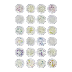 Contém: 24 - Glitter para Decoração de Unhas e Maquiagem Artística na Cor Branca Furta Cor Kit composto por 24 potinhos individuais, cada um preenchido com glitter em tons de branco e furta-cor, contendo glitter em variados tamanhos e formatos: flocos finos, médios e grandes, em formatos como hexágonos e círculos. Ideal para decoração de unhas, o glitter pode ser aplicado em unhas naturais, de gel, acrílicas e encapsuladas. Também pode ser em maquiagens artísticas, sendo perfeito para criar efeitos brilhantes e sofisticados em makes para festas, performances ou eventos temáticos. Compactos e organizados em potinhos com tampas de rosca que evitam o desperdício. Características Principais: - 24 potes de glitter; - Flocos finos, médios e grandes, em diferentes formatos; - Pode ser tanto em unhas naturais quanto artificiais; - Adequado para nail art e maquiagem artística; - Potes com tampas de rosca que evitam desperdício; - Tons vibrantes e variados; - Visual sofisticado e elegante. Boas Compras ; Marca: Não Informado Ean: 7908639610962