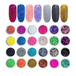 Características Principais:? - 24 potes de glitters; - Cores vibrantes; - Fórmula com propriedades de não-amarelamento das unhas; - Produto de ótima qualidade. - Decoração e encapsulamento de unhas; - Unhas naturais e artificiais; - Visual moderno, criativo e ousado; -Potes com tampas que evitam desperdício.