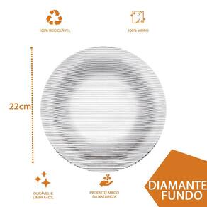 Conjunto 24 Pratos Transparente Redondos Fundo 22cm Diamante