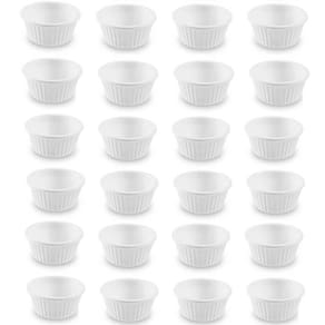 O conjunto de 24 ramekins canelados é produzido 100% em melamina, material resistente, com design compacto e brilhante. Uma ótima opção para lanchonetes, pubs, bares e restaurantes ou até mesmo para suas refeições em casa. Possuem tamanho ideal para servir molhos como maionese, ketchup e mostarda, além de ser fácil de limpar, podendo ir a lava louças. O ramekin em melamina além de elegante é o complemento perfeito para servir seus petiscos e porções seja para família e amigos ou seu negócio.