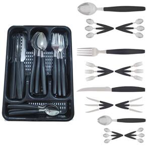 Kit 24 Talheres Berlim Aço Inox Preto C/ 1 Porta Talheres