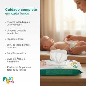 - Conteúdo da Embalagem: 24 Toalha Lenço Umedecido com 50un Cada Maxi Baby