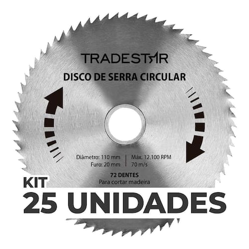 Kit com 25 unidades Disco Serra Circular Madeira 72 D 110x20mm para uso Makita