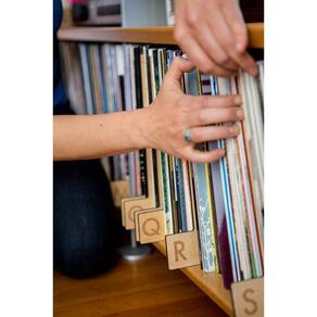 Este é o modelo ideal para quem possui discos organizados em caixas, pois as letras ficam na parte superior das divisórias.