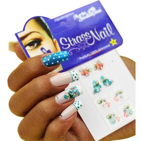Esse KIT contém 25 cartelas STRASS NAIL com 10 adesivos cada, totalizando 250 adesivos.