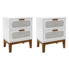 AS IMAGENS SÃO MERAMENTE ILUSTRATIVAS E PODEM SOFRER VARIAÇÕES DE COR E PEQUENOS DETALHES DE ACORDO COM O SEU MONITOR, ILUMINAÇÃO DO AMBIENTE E ATÉ MESMO A SUA PERCEPÇÃO 2Mesas de Cabeceira Santorini 2Gavetas 45 Cm Branco