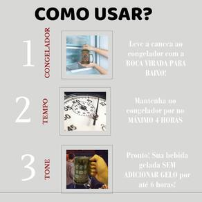Modo de Uso Simples: Coloque a caneca no freezer sempre com a boca para baixo. Deixe lá por no máximo 4 horas.