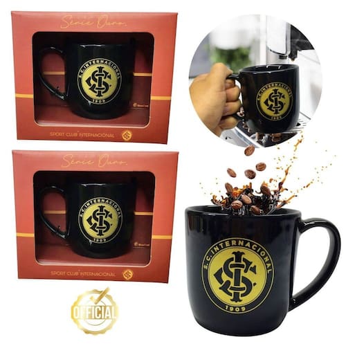 Kit 2un caneca preta xícara porcelana 300ml café time internacional serie ouro dourado oficial Kit 2un caneca preta xícara porcelana 300ml café time internacional serie ouro dourado oficial A caneca caneca porcelana urban do internacional é perfeita para os colorados mais apaixonados demonstrarem todo o carinho pelo seu time e ao mesmo tempo apreciar suas bebidas favoritas nos momentos mais aconchegantes da vida. Além disso você pode usá-la como porta treco, porta lápis ou presentear alguém especial.