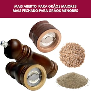 O Kit com 2 Moedores de Pimenta e Sal Manual em Madeira com Mecanismo em Cerâmica 6 é a escolha perfeita para quem busca praticidade, elegância e funcionalidade na cozinha e à mesa. Com design sofisticado e acabamento amadeirado premium, este conjunto é ideal para quem deseja moer temperos frescos na hora e realçar o sabor das receitas. Cada moedor possui mecanismo interno em cerâmica afiada e resistente, que garante moagem uniforme de pimenta do reino, sal grosso, sal rosa, alho seco, sementes e diversas especiarias. O sistema rosqueável com ajuste de moagem permite escolher entre grãos finos ou mais grossos, atendendo diferentes preparos. O kit é perfeito para usar um moedor com pimenta e o outro com sal, ou até variar com especiarias diferentes, trazendo ainda mais versatilidade para sua cozinha ou restaurante. Diferenciais do Kit 2un: Mais praticidade: utilize um moedor para pimenta e outro para sal ou diferentes temperos. Mecanismo cerâmico durável: garante moagem uniforme, fina ou grossa. Design amadeirado elegante: ideal para mesa posta sofisticada, churrascos e jantares especiais. Multiuso: indicado para pimenta do reino, sal rosa, sal grosso, alho seco, especiarias e ervas. Conjunto econômico: duas unidades para uso doméstico ou . Indicado para: Cozinhas domésticas e profissionais Restaurantes, bares e eventos gastronômicos Mesa posta elegante em jantares e churrascos Quem busca praticidade e estilo no dia a dia Especificações Técnicas: Quantidade: Kit com 2 unidades Tamanho: 6 polegadas aprox. 15 cm cada Material: Madeira + mecanismo interno em cerâmica Tipo: Manual, rosqueável, regulagem de moagem fino/grosso Uso: Pimenta do reino, sal grosso, sal rosa, alho seco, especiarias e sementes Com o Kit 2un Moedor de Pimenta e Sal Manual Amadeirado Premium, você tem praticidade em dobro, mais elegância à mesa e temperos sempre frescos para deixar suas receitas irresistíveis