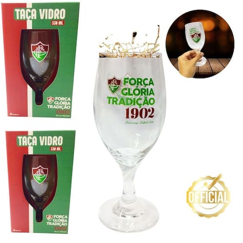 Kit 2Un Taças Windsor 330ml Vidro Cerveja Coquetel Chopp Bar Fluminense Força Glória Tradição