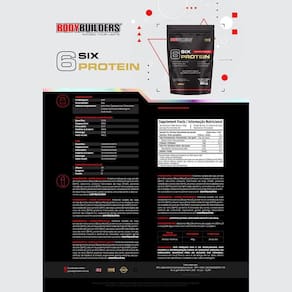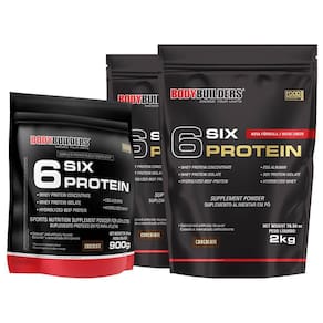 Kit 2x 6 six protein 2kg + 1x 6 six protein 900g - bodybuilders Sabor: chocolate Kit six protein: 2x 6 six protein 2kg + 1x 6 six protein 900g. Sabores: baunilha, chocolate e morango. A 6 six protein bodybuilders é elaborada para atender uma variedade de dietas e estilos de vida, é composta por 6 proteínas combinadas, cada uma com diferentes perfis de aminoácidos. Sua fórmula garante absorção da proteína por um tempo prolongado e é a solução ideal para as necessidades de proteína de qualquer indivíduo.Ingredientes: proteína isolada da soja, amido de milho ceroso waxy maize , proteína concentrada do soro do leite wpc , albumina, proteína isolada do soro do leite wpi , proteína hidrolisada do soro do leite wph , proteína hidrolisada da carne, aromatizante, espessante goma xantana, edulcorante sucralose e acessulfame de potássio. Não contém glúten.