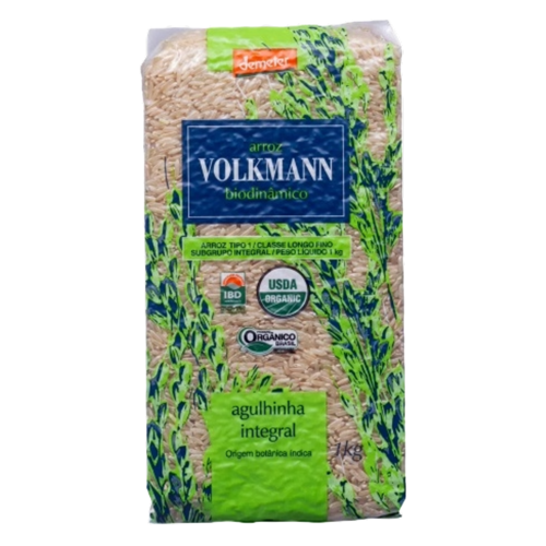 O Arroz Agulhinha Integral Orgânico Biodinâmico Demeter Volkmann passa somente pelo processo de descasque em que a casca é retirada ficando as fibras e o germe. É produzido sem agrotóxicos, adubos químicos ou conservantes.