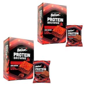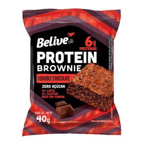 Kit 2X Brownie Protein Zero Açúcar Double Chocolate- BeliveContém 2 unidades com 10 unidades de 40g cada.Brownie com 6g de proteínas.Sem glúten, Zero açúcar.Zero LeiteZero Lactose e rico em fibras. Cada unidade tem 6g das melhores proteínas de origem vegetal soja e ervilha Textura macia, com gotas de chocolate amargo Sem açúcar, adoçado com stévia Rico em fibras, sem glúten, sem leite/lactose e com ingredientes não transgênicos Prática porção individualInformações de alergênicos:Contém derivados de soja e ovo.FonteFabricante do produto.