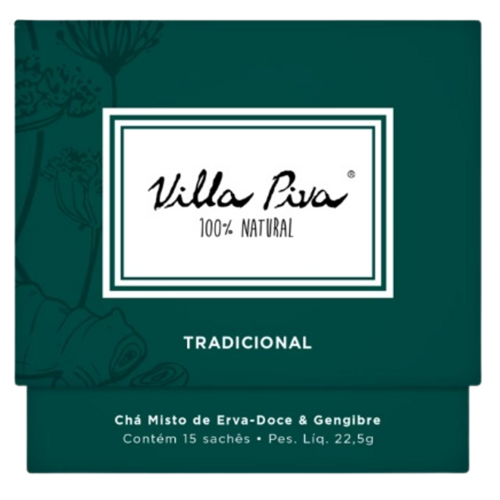 Feito de ingredientes 100% naturais, o Chá Misto Tradicional Villa é composto por um blend de Erva doce e gengibre.