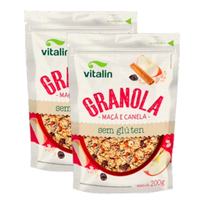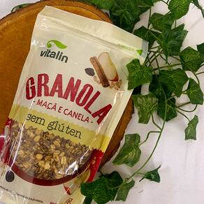 A Granola Maçã e Canela Sem Glúten Vitalin leva como base aveia em flocos e conta com ingredientes de alto valor nutricional.
