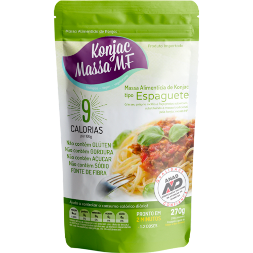 A Massa Konjac Tipo Espaguete é um produto 100% feito da farinha do glucomannan (Konjac), contendo apenas 9 kcal a cada 100g, 0g de carboidratos.