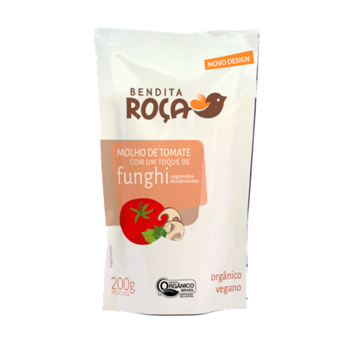 O Molho de Tomate com Funghi Orgânico Bendita Roça leva o molho de tomate orgânico com um toque perfeito de funghi secchi.