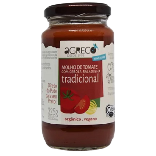 O Molho de Tomate Tradicional Orgânico Agreco é feito com cebola raladinha! Tomates cultivados sem agrotóxicos não contém corantes, nem conservantes.