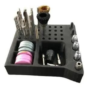 Suportes para Dremel e outros tipos de micro retíficaPara armazenar suas brocas - bits - discos de corte, tanto em mesa ou mala de ferramentas.Não acompanha parafusos, brocas e buchas.Itens Inclusos:- 2 Suporte para acessórios de mini retifica Fabricante: SNS3D Código do Produto: 00254 2 207