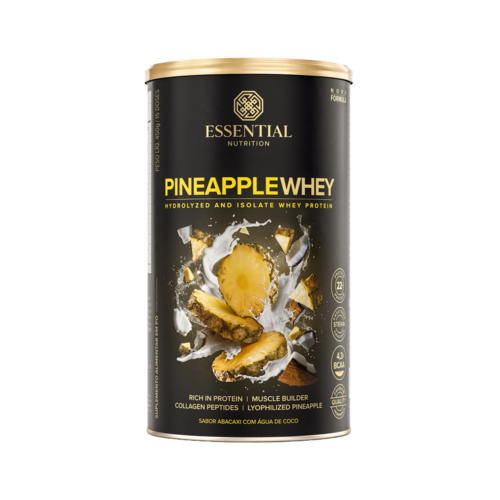 O Pineapple Whey Essential Nutrition é a combinação do abacaxi com a água de coco, o tornado uma opção deliciosamente refrescante e nutritiva, além de proteica. Junto ao blend de Whey Protein Isolado e Hidrolisado também está o colágeno hidrolisado em peptídeos, que agregam valor à fórmula e complementam a ação do produto.