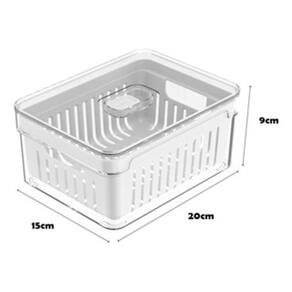 Detalhes dos produtos: - Os organizadores possuem cesto e bandeja de drenagem que evitam que os alimentos fiquem molhados após a lavagem, ajudando a prevenir a deterioração precoce; - As tampas com respiradouros dos organizadores mantém o nível de umidade ideal para cada tipo de alimento, mantendo-os frescos por mais tempo; - O cesto de drenagem dispõe de alças laterais que facilitam o transporte e manuseio; - Possuem total transparência para você enxergar o conteúdo e manter tudo em ordem; - Não suportam micro-ondas; - Livres de bisphenol A; - Não suportam freezer; - Suportam geladeira; - Empilháveis.