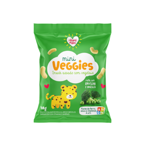Feito com ingredientes 100% naturais, integrais e sem gordura trans ou aditivos artificiais, o Snack Infantil Mini Veggies Ervilha e Brócolis Nhami Mami é perfeito para um lanchinho saudável e equilibrado.