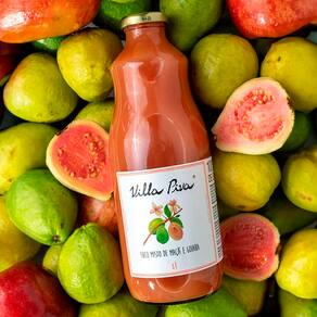 O Suco de Goiaba Integral Sem Açúcar Villa Piva é produzido somente com 2kg de goiaba por litro, sem elementos artificiais, corantes, açúcares ou conservantes.