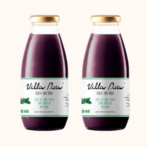 Kit 2X: Suco de Uva com Hortelã Sem Açúcar Villa Piva 300ml O Suco de Uva com Hortelã Sem Açúcar Villa Piva 300ml é produzido somente com 2kg de uva por litro, sem elementos artificiais, corantes, açúcares ou conservantes.