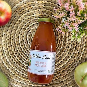 O Suco de Goiaba e Maçã Integral Sem Açúcar Villa Piva 300ml é produzido somente com 2kg de goiaba por litro e adoçado com suco de maçã, sem elementos artificiais, corantes, açúcares ou conservantes.