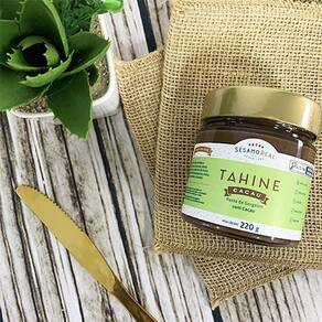 O Tahine com Cacau Sésamo Real é uma deliciosa combinação de Tahine Tradicional pasta de gergelim descascado , Cacau 100%, Nibs de cacau e Açúcar Demerara orgânico.x000d