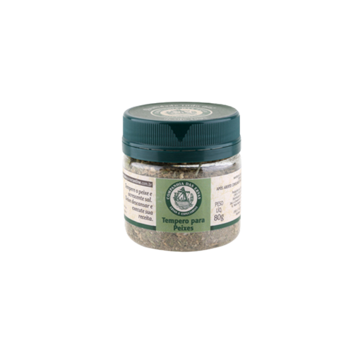 O Tempero para Peixes Companhia das Ervas é uma preparação a base de Alho, cebola, salsa, cebolinha, coentro desidratado e pimenta do reino, sem adição de sal.